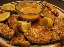 The debate is mainly one of semantics as nutritionists consider all chicken from mammals to be "red chicken" while this is not the case in other fields such as husbandry, biology, genetics, physiology, etc. In Israel, where Jewish dietary laws are popularly practiced, forbidding the consumption of pork, "light chicken" is the accepted euphemism for pork. Within poultry, there are two types of chicken—light and dark. The different colors are based on the different locations and uses of the muscles. As the pieces of chicken cook, some of the moisture that exudes from the chicken is absorbed by the coating of flour and browns along with the flour, creating a flavorful crust. Traditionally, lard is used to fry the chicken, but corn oil, peanut oil, canola oil, or vegetable oil are also frequently used. The flavor of olive oil is generally considered too strong to be used for traditional fried chicken, and its low smoke point makes it unsuitable for use.There are three main techniques for frying chickens: pan frying, deep frying and broasting. Pan frying (or shallow frying) requires a frying pan of sturdy construction and a source of fat that does not fully immerse the chicken. The chicken pieces are prepared as above, then fried. Generally the fat is heated to a temperature hot enough to seal (without browning, at this point) the outside of the chicken pieces. Once the pieces have been added to the hot fat and sealed, the temperature is reduced. There is debate as to how often to turn the chicken pieces, with one camp arguing for often turning and even browning, and the other camp pushing for letting the pieces render skin side down and only turning when absolutely necessary. Once the chicken pieces are close to being done the temperature is raised and the pieces are browned to the desired color (some cooks add small amounts of butter at this point to enhance browning). The moisture from the chicken that sticks and browns on the bottom of the pan become the fonds required to make gravy. Chicken Maryland is made when the pan of chicken pieces, and fat, is placed in the oven to cook, for a majority of the overall cooking time, basically "fried in the oven".Deep frying requires a deep fryer or other device in which the chicken pieces can be completely submerged in hot fat. The pieces are floured as above or battered using a batter of flour and liquid (and seasonings) mixed together. The batter can/may contain ingredients like eggs, milk, and leavening. The fat is heated in the deep fryer to the desired temperature. The pieces are added to the fat and a constant temperature is maintained throughout the cooking process.